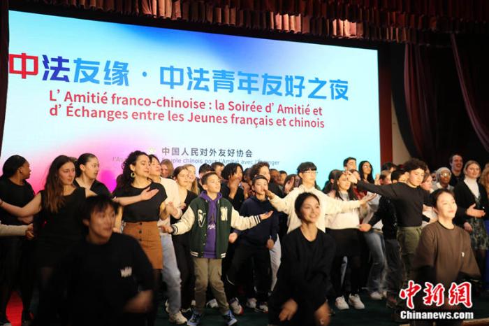 中法青少年共同表演的流行舞蹈《科目三》,将整场晚会的氛围推向了高潮,观众们纷纷起立鼓掌,为两国青年的美好友谊欢呼。